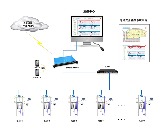 根据万达广场面临的电梯困人、超速、卡层等故障无法主动发出告警信息的难题,我公司制定了电梯物联网监控系统解决方案。