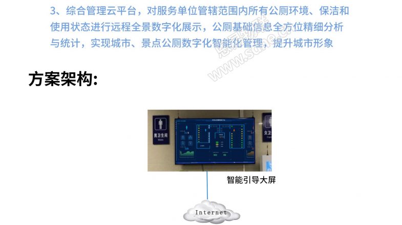 时搏网页版登录入口智慧公厕解决方案实现功能: 1、公厕基础信息全方位精细统计 2、公厕各气体的含量进行有效监测,识别臭气 3、人流量监测及管理,合理配置清洁频率与人手 4、公厕设备的监测与调控,包括通风、空调、…