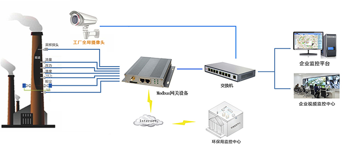 工厂环境污染数据采集,应用Modbus网关数据采集、数据上报、字符叠加功能。