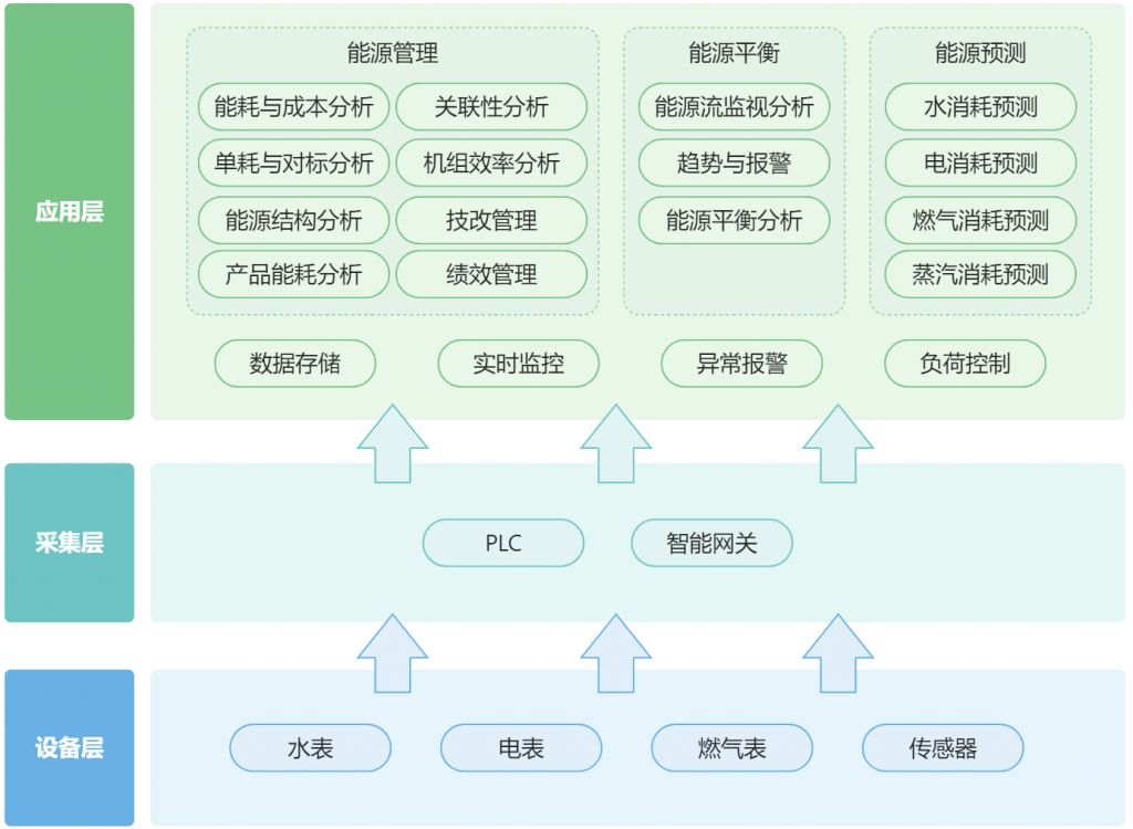 能源管理系统对企业生产环节的水、电、热、气等能源数据进行采集、监控和管理。通过对能源消耗的统计、分析、监测、预测,达到深挖节能潜力,实时监测和推送能耗异常信息的精细化能源管控目标。使企业管理层对企业的能源成本比重、发展趋势有准确的掌握,帮助企业在扩大生产的同时合理计划和利用能源,降低单位产品能源消耗,创造“低碳”效益。