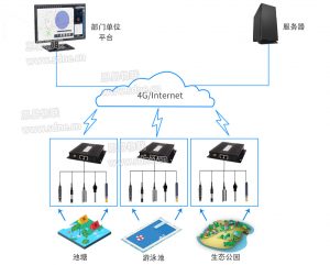 水质信息采集叠加器通过传感器组,采集水的温度、溶解氧、PH、浊度、电导率等数据,和监测设备故障并进行整合分析处理,将分析处理后的有效信息发送到显示器、大屏上实时展现。