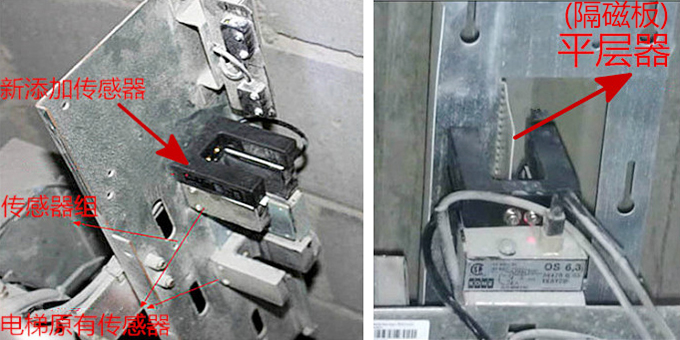 2、电梯运行时,要确保隔磁板能挡住光电传感器的信号收发处,并确保隔磁板在收发组件的中间通过,但也要注意不能让光电传感器碰到隔磁板或其它的电梯配件。