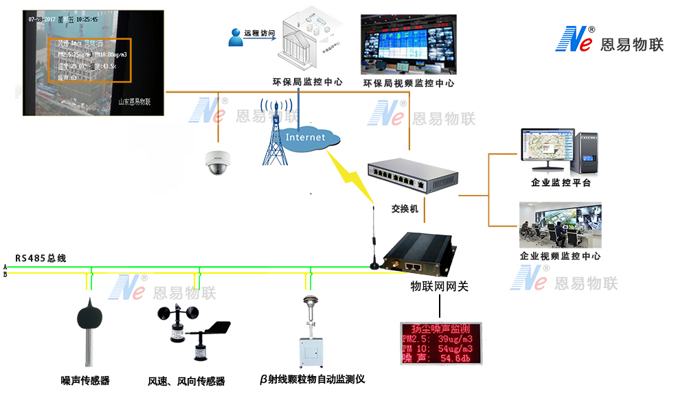 物联网网关(NE-MS7000-HJ)是一种将HJ协议设备输出的数据,融合到海康、大华等网络摄像机视频画面中,并可通过网络(有线/4G)上报至第三方平台的设备,主要用于实时获取、保存所监测多路传感器的数据信息,方便查看。