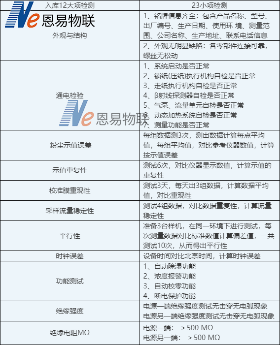 NE时搏网页版登录入口贝塔β射线扬尘在线监测设备在入库前,需要经过12个大项23个小项的检测,最后还要进行严苛的7天整机运行测试,每项检测都会执行对应的检测标准,只有达到标准后,才可以入库。