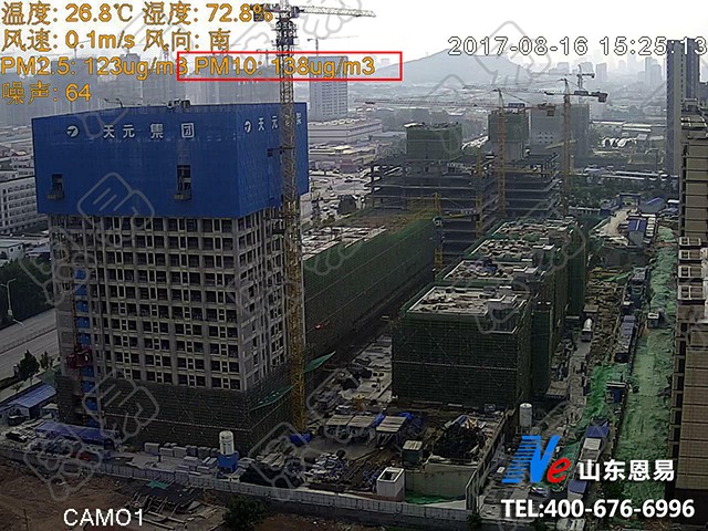 【摘要】为更高效的监测大气污染情况,近日,山东恩易隆重推出“数据超标变色”的新功能产品—工地扬尘监测系统。