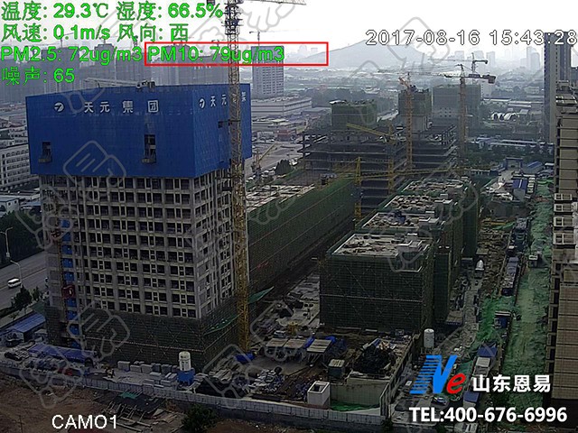 恩易工地扬尘监测系统于2017年7月上市,短短数月,受到广大用户的青睐。为更加高效监测大气环境,满足实际使用中的需求,山东恩易推出“新功能”——数据超标变色。区别于普通工地扬尘监测系统是可根据监测环境污染情况,在视频画面上叠加显示不同颜色的数据信息。实现快速锁定扬尘超标的监测点,及时采取降尘措施,最大程度降低周边环境的污染,更好为市民服务。