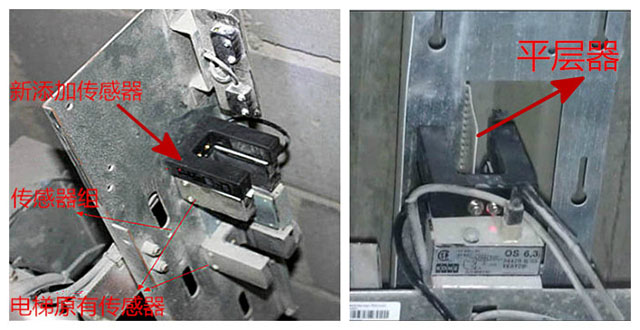 改动一:在电梯原传感器组加装电梯专用平层传感器,用于感应电梯运行状态。