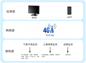 示范田智慧农业在线监测系统是一个物联网系统,主要由感知层(现场在线监测设备)、网络层(传输网络)、应用层(监控中心)三个部分组成。