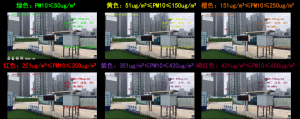 l环保等级变色(彩色叠加):七年自主开发技术积累,实现视频字符融合,多级环保变色预警功能;