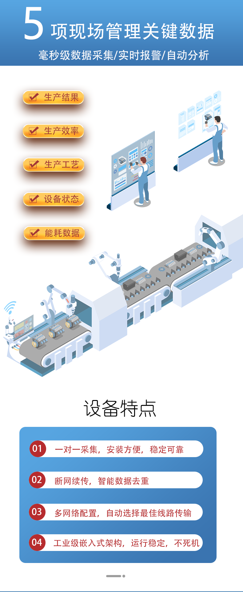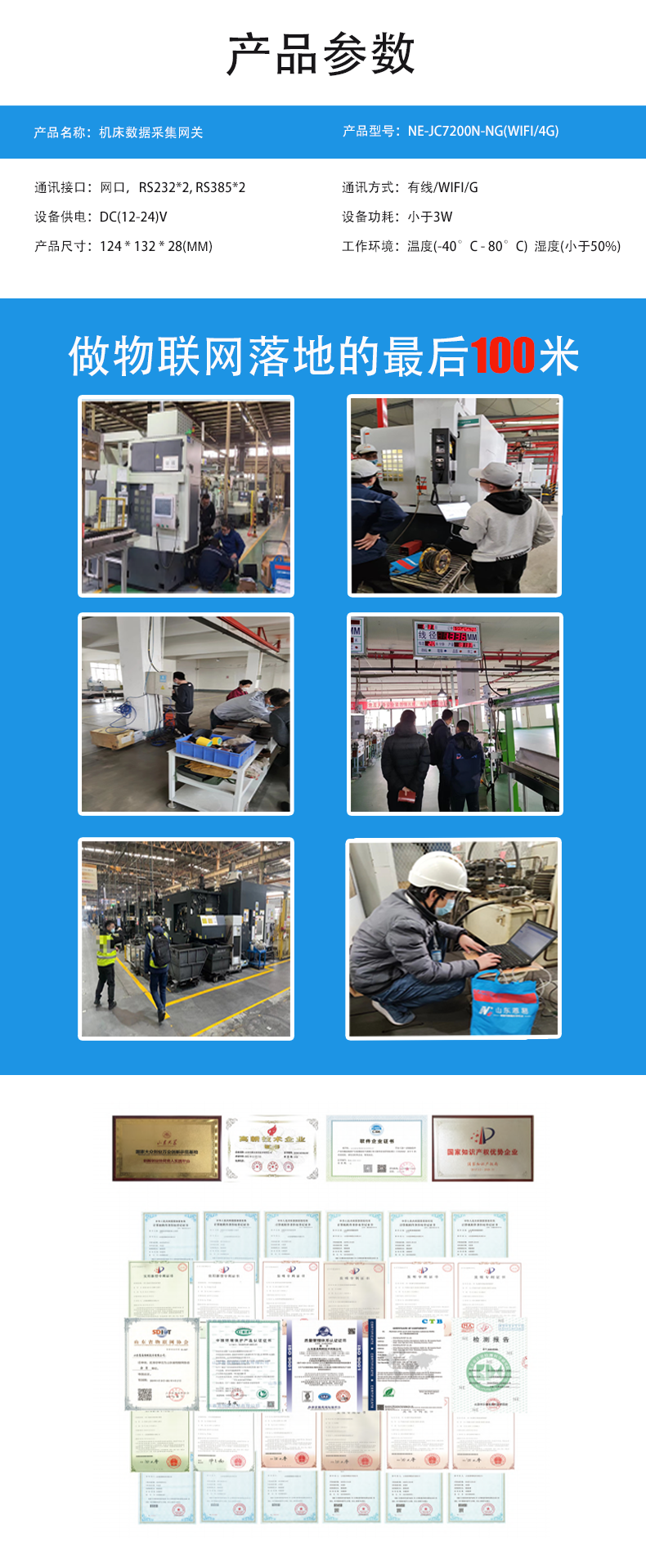 恩易JC7200N系列机床网关是由时搏网页版登录入口自主设计研发的工业互联网终端产品,网关可以实时采集数控机床的生产结果、生产效率、工艺标准、设备状态等数据,主动将数据上传到上层系统,为ERP/MES/PLM等系统提供实时、准确、客观的基础数据。帮助企业实现数字车间,落地智慧工厂,是制造业企业进行数字化转型的必备产品。
