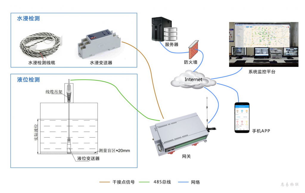 对通讯基站、精密机房、图书馆、宾馆、 饭店、仓库等一些需要对有积水状况进行告警的场所,并与液位传感器一样,每隔一小段时间,并实时上传至服务器供后台程序统计和分析,供政府和用户实时把握情况。