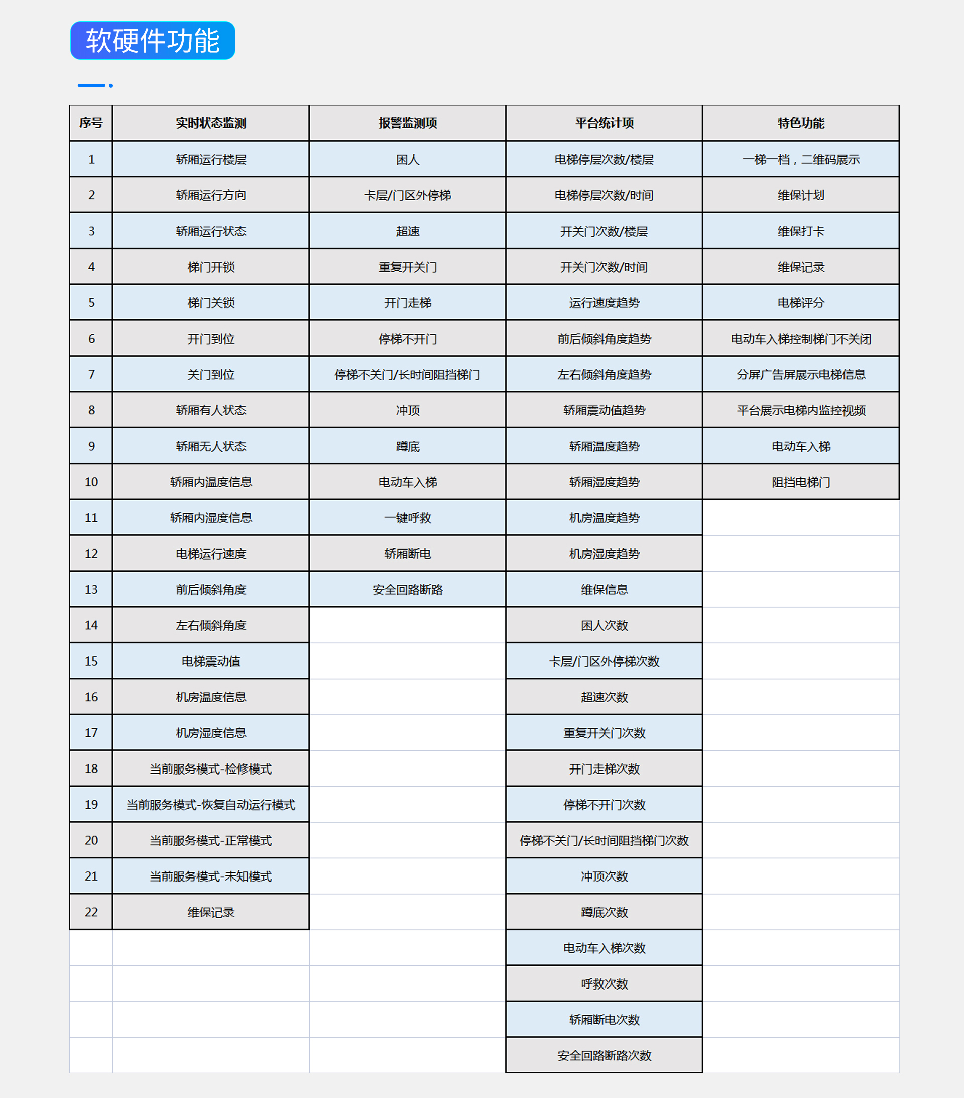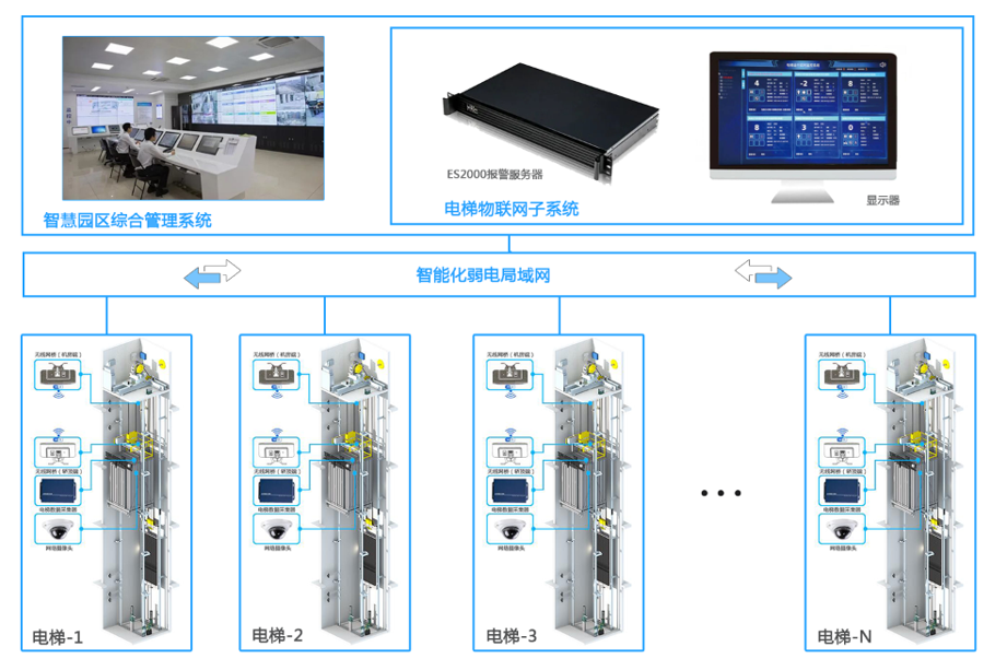 电梯远程安全监测系统是电梯实时监控、电梯运行状态和电梯故障状态展示的物联网系统,适用于垂直电梯(品牌无限制)数据采集,通过电梯安全物联网终端(ES1500型)、多种专业电梯传感器以及电动车识别摄像机获取电梯运行实时状态,能展示电梯运行状态(楼层、上下行、速度、运行里程等)、识别进梯电动车、电梯故障报警(卡层、困人、超速、开关门异常等)、安全回路状态等。