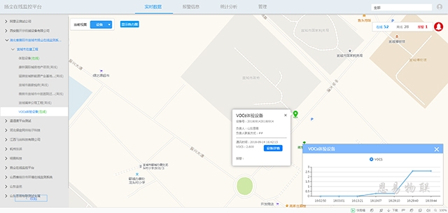 1)可结合电子地图确切的知道每个设备所在位置,方便用户直观查看区域内所有监测点的部署情况和环境质量状况。