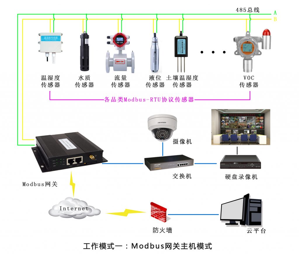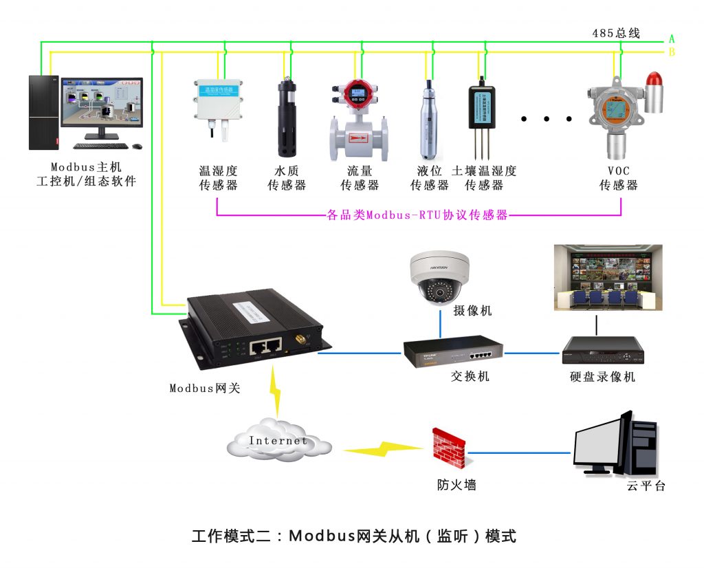 应用Modbus网关数据采集、数据上报、字符叠加功能