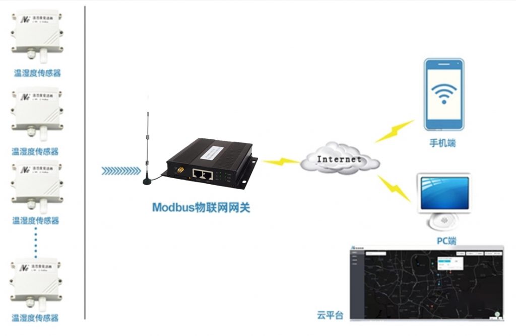 一些场所对温湿度要求十分严格,恩易modbus物联网网关可以将采集到的温湿度信息,上报至管理平台,超标报警,方便工作人员管理。