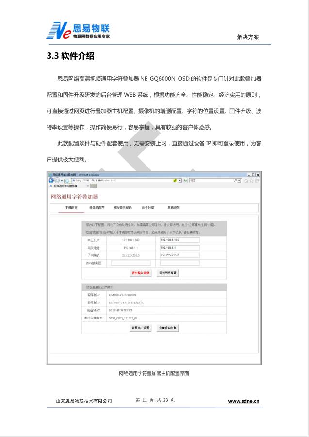 目前,可以改善传统数字监控系统,将环境监测传感器数据实时融合到监控视频画面上的产品就是恩易网络高清字符叠加器NE-GQ6000N-OSD;在物联网云平台上,一经融合,数据信息将永久随视频保存,无论视频传输到什么平台都会带有前端环境监测数据。