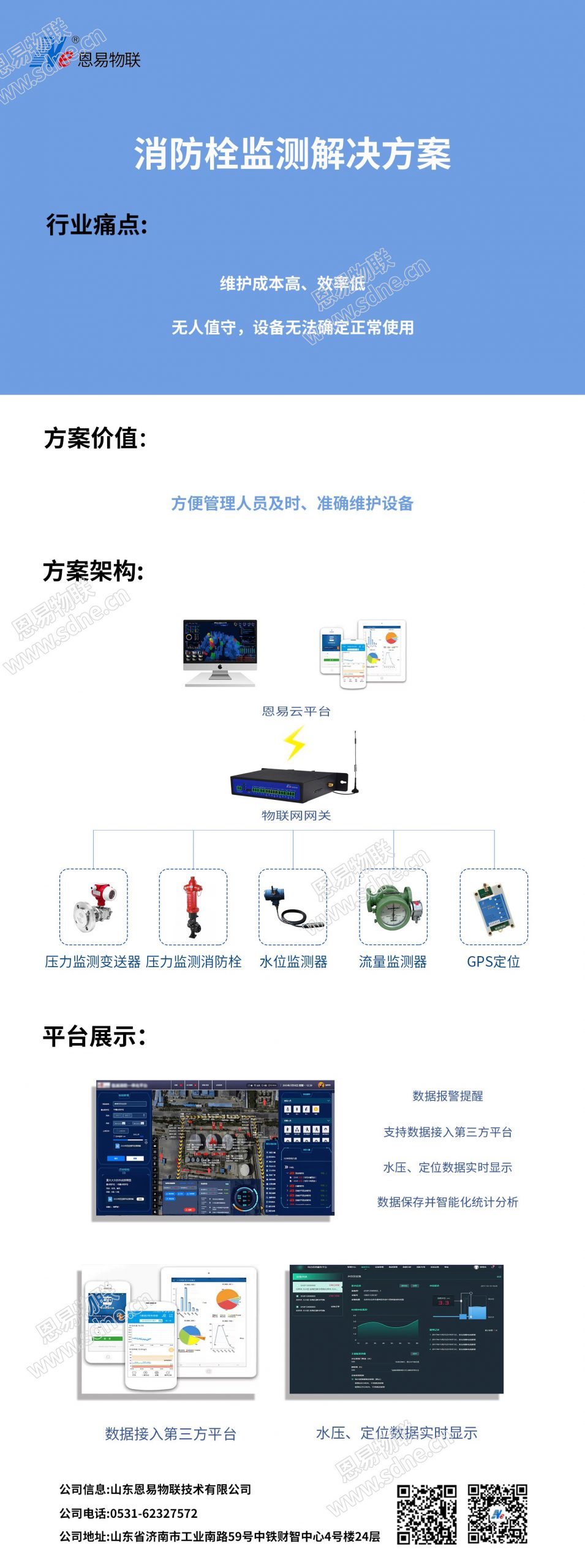 消防栓监测解决方案 物联网应用技术 | 2021年10月29日 | 物联网应用解决方案 时搏网页版登录入口消防栓监测解决方案具备方便管理人员及时、准确维护消防栓设备,实时感知消防栓压力、流量及消防水箱水位等信息,通过GPS定位,平台精准显示消防栓状态等。 想要了解更多解决方案,欢迎拨打:0531-62327572