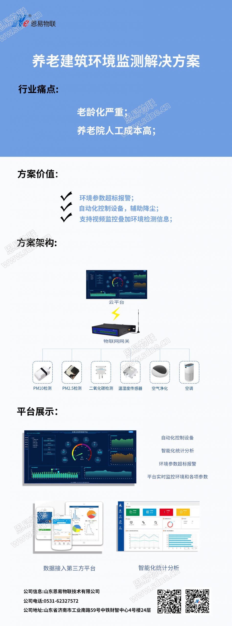 养老建筑环境监测解决方案 物联网应用技术 | 2021年10月29日 | 物联网应用解决方案 时搏网页版登录入口养老建筑环境监测解决方案可实时监测环境参数,超标自动报警并开启空气净化器或空调装置,自动调节环境温度及空气质量。 想了解更多解决方案,请拨打0531-62327572