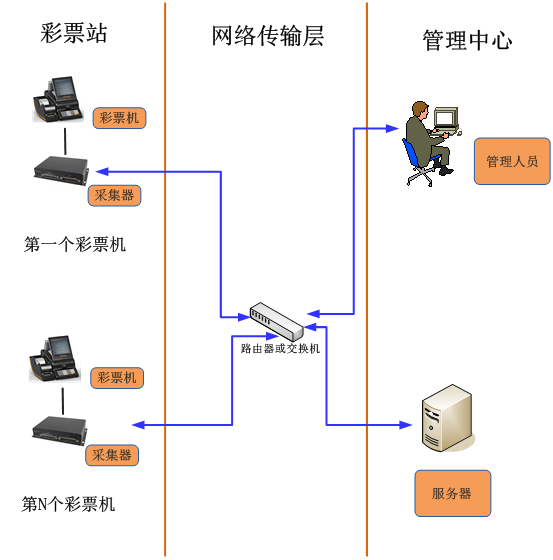 彩票数据采集器是一款用来采集USB、并口或串口的打印机数据,将数据实时上传到服务器的一款设备,采集器可脱离打印机单独工作;这样所有的彩票数据就不需要实时打印出来。当中奖时,工作人员通过服务器直接调取出中奖的彩票数据然后进行打印彩票。这种方式下,打印机可以去除,不需要再打印,避免了纸张的浪费及省去了工作人员大量的工作。